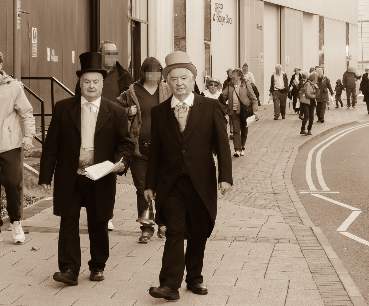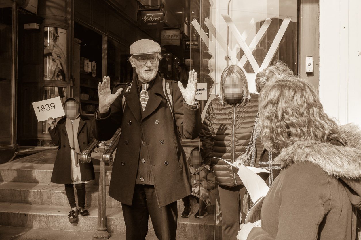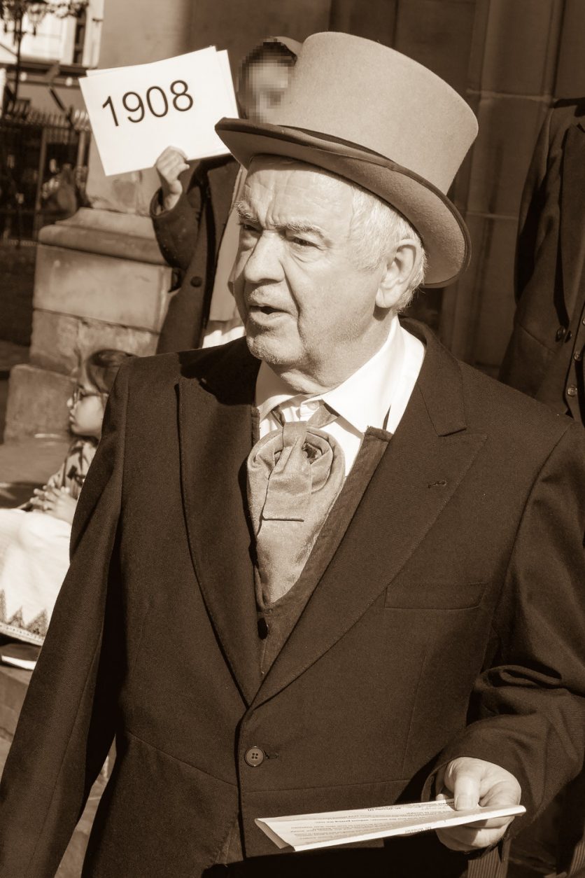 The dramatic trail was led by Don Hazzard, one of Birmingham’s foremost historians. He started the trail by explaining that the walk was to illuminate two aspects of Birmingham’s history; the Chartist Struggle and the campaign by the Birmingham Women’s Suffrage movement and the Suffragettes.
